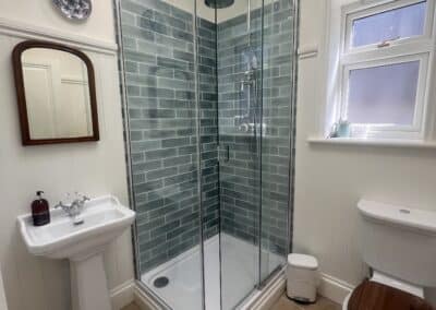 The conversion includes a fully fitted kitchen, a separate utility room, a bathroom, and an additional shower room, providing practical and well-designed living accommodation. Throughout the property, we installed tongue-and-groove effect panelling, finished with Farrow & Ball paint, delivering a high-quality, timeless finish.