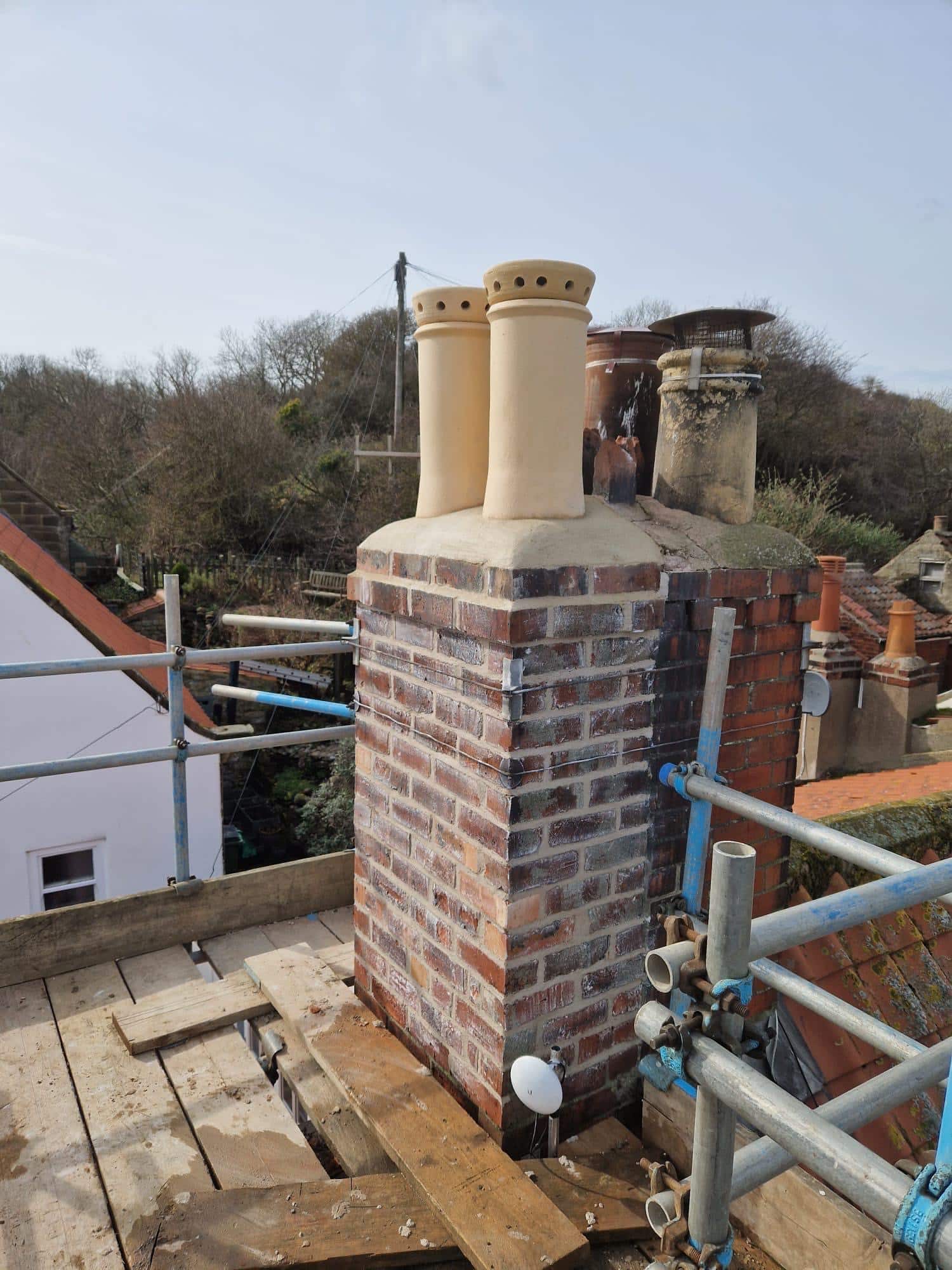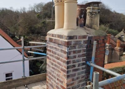 Once the interior was complete, we moved outside to replace all the cast iron guttering and began repointing the masonry. The mortar was carefully removed by hand before being replaced with hot-mixed lime mortar—replicating the original material used and providing essential protection for the long-term preservation of the building.
